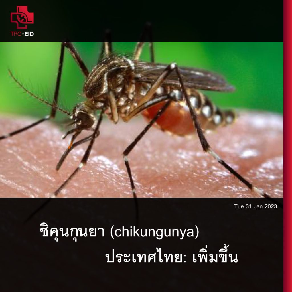 # ชิคุนกุนยา (chikungunya) – ประเทศไทย: เพิ่มขึ้นเจ้าหน้าที่สาธารณสุขของไทยรายงานการติดเชื้อชิคุนกุนยาเพิ่มขึ้นสองเท่าในปี พ.ศ. 2565 เมื่อเทียบกับปีก่อนหน้า [พ.ศ. 2564]เจ้าหน้าที่รายงานผู้ป่วยทั้งหมด 1,370 รายใน 48 จังหวัดในปี 2565 เทียบกับ 671 รายใน 39 จังหวัดในปี 2564 หรือเพิ่มขึ้น 104%ไม่มีรายงานการเสียชีวิตในปีใด [2021 และ 2022]ชิคุนกุนยาเป็นโรคไวรัสที่ติดต่อสู่คนผ่านการกัดของยุงที่ติดเชื้อไวรัสชิคุนกุนยาอาการที่พบได้บ่อยที่สุดคือมีไข้ขึ้นทันทีทันใด มักมีอาการปวดข้อร่วมด้วย อาการอื่นๆ ได้แก่ ปวดกล้ามเนื้อ ปวดศีรษะ คลื่นไส้ เหนื่อยล้า และมีผื่นขึ้นภาวะแทรกซ้อนที่ร้ายแรงนั้นพบได้ไม่บ่อย แต่กรณีที่รุนแรงผิดปกติอาจทำให้เกิดอาการในระยะยาวและถึงขั้นเสียชีวิตได้ โดยเฉพาะในผู้สูงอายุ source : http://trceid.org